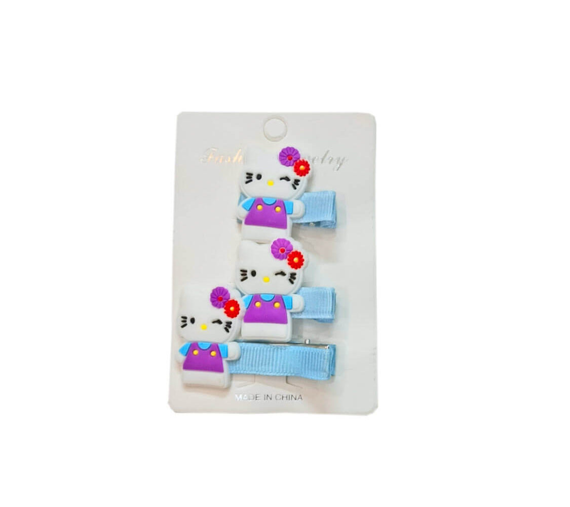 Cute Kitty Hair Silicone Clips 3pc Set – Blue