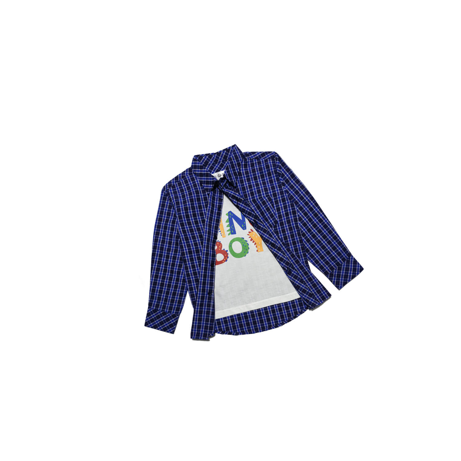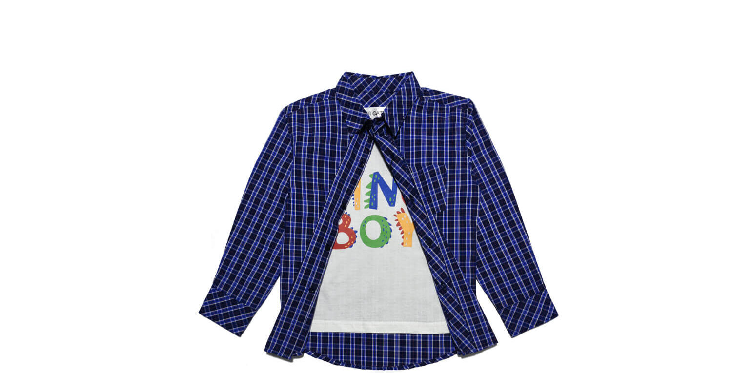 Dino Boy Regular Check Twofer Casual Shirt -White & Blue