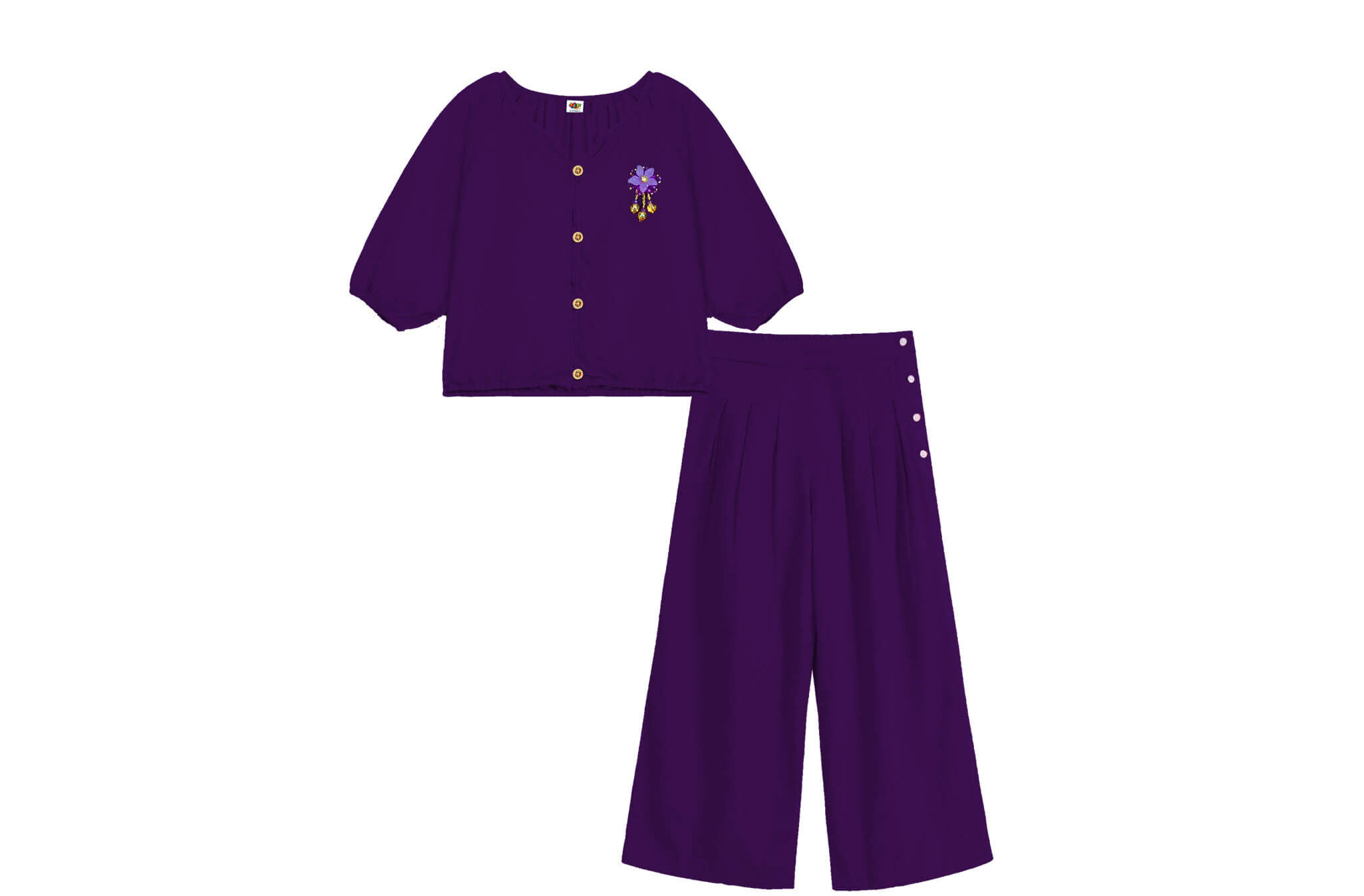 This two-piece cotton-rich lawn outfit is perfect for summer days. It includes a shirt featuring a round neck, three quatter sleeves, and a fun motifs on the front, teamed with comfy trouser.
