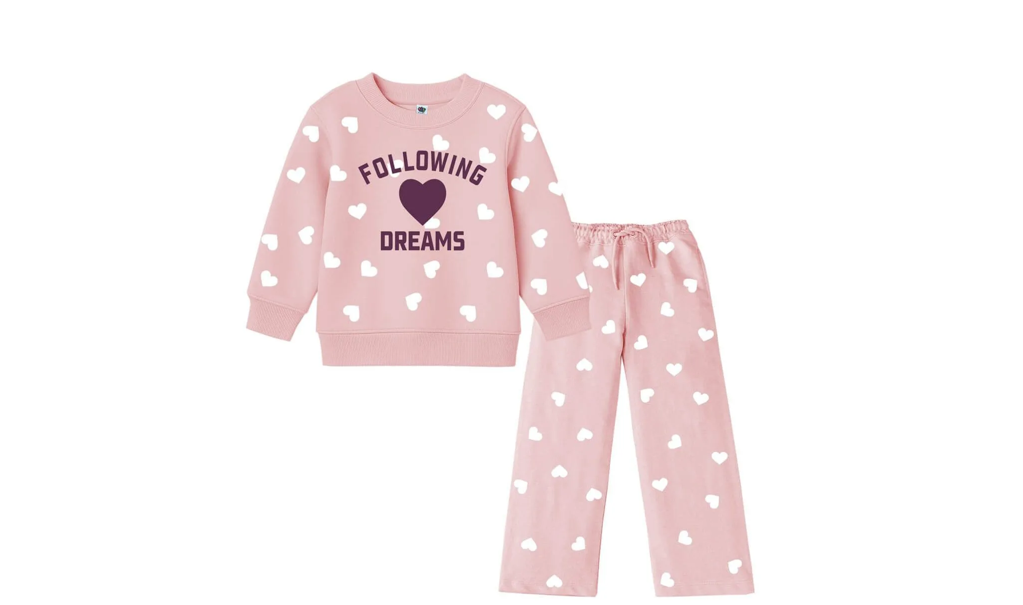 Following Dreams Hearts Fleece Tracksuit -Peach