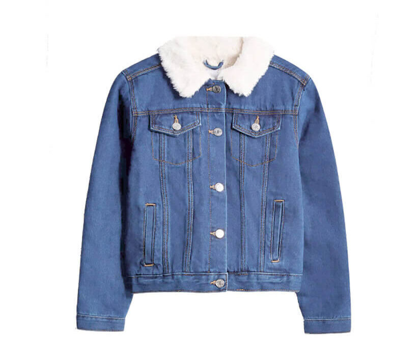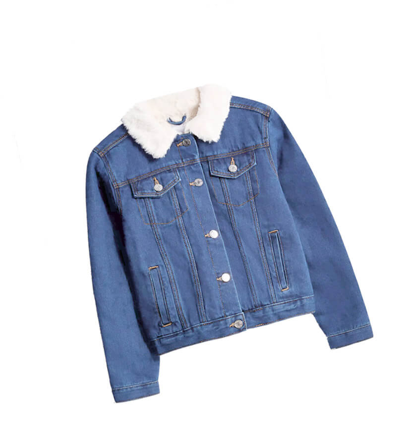 Fur Coller Sherpa Inside warm Denim Jacket – Light Blue