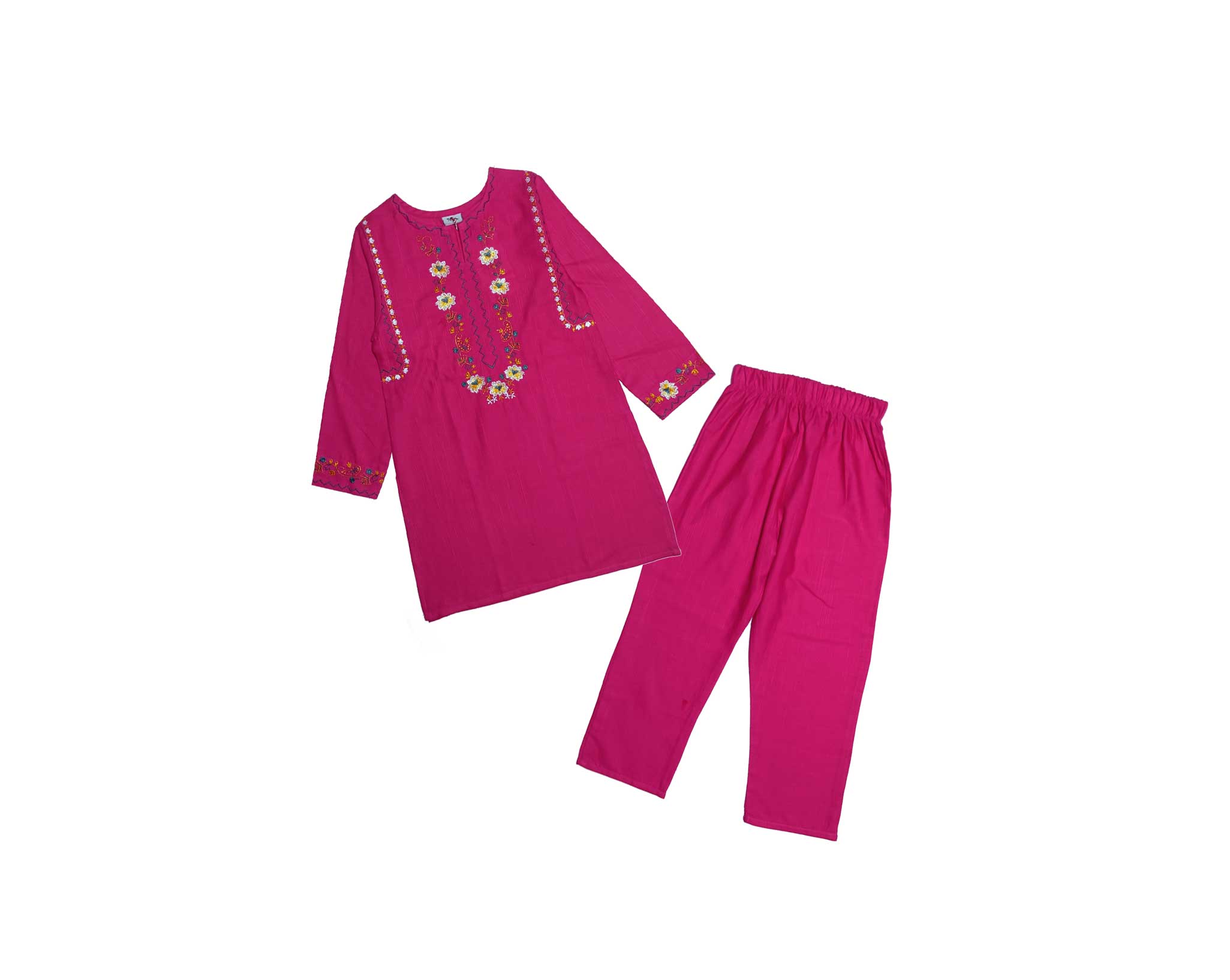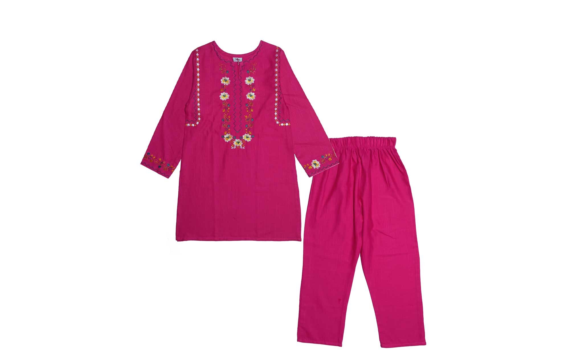 Girls Sunflowers Emb Khaddar 2pcs Suit – Shocking Pink