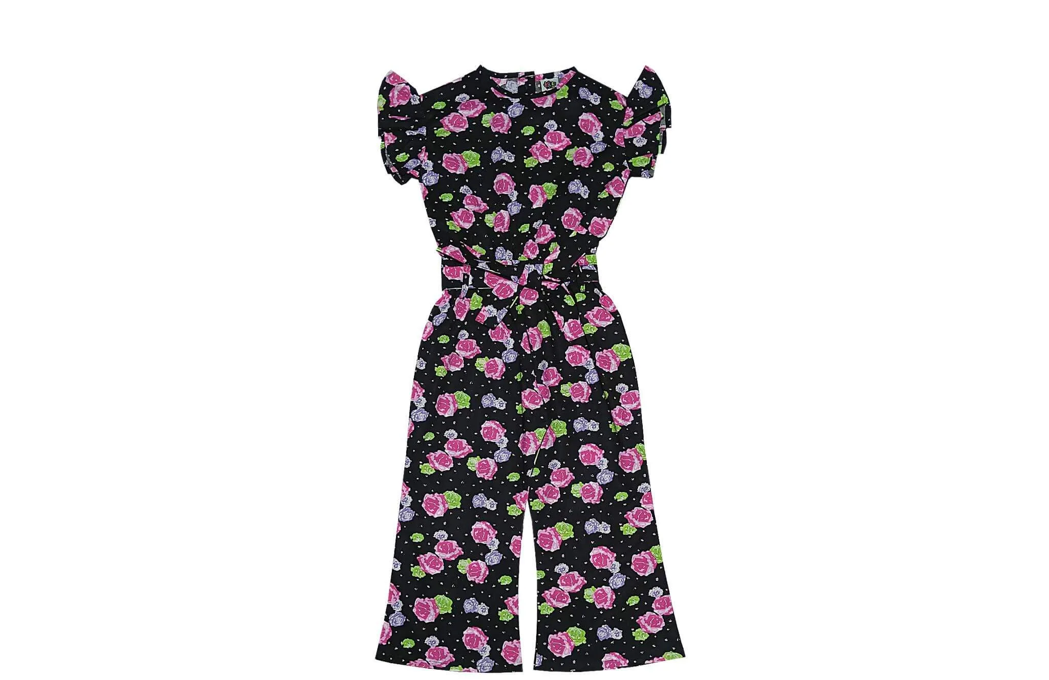 Grow Red Rosses Cotton Frill Sleeves JumpSuit – Black
