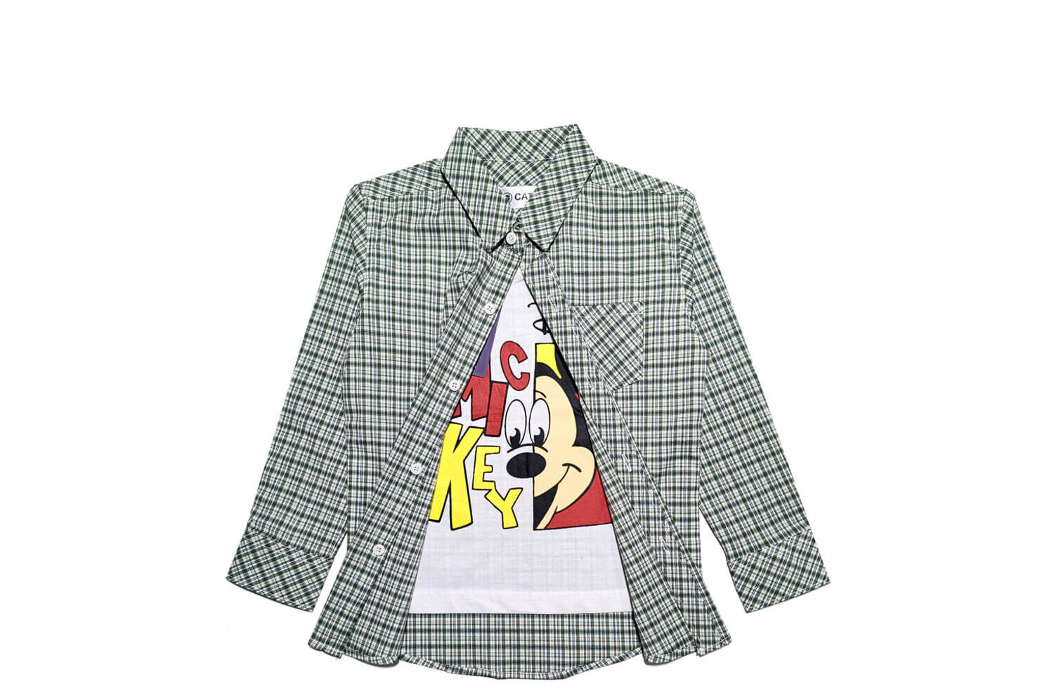 Hide Mickey Checked Twofer Cotton Casual Shirt – Green