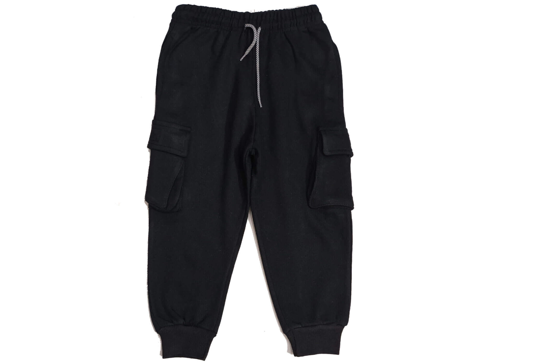 Kids Loose Fit Fleece Cargo Trouser -Black