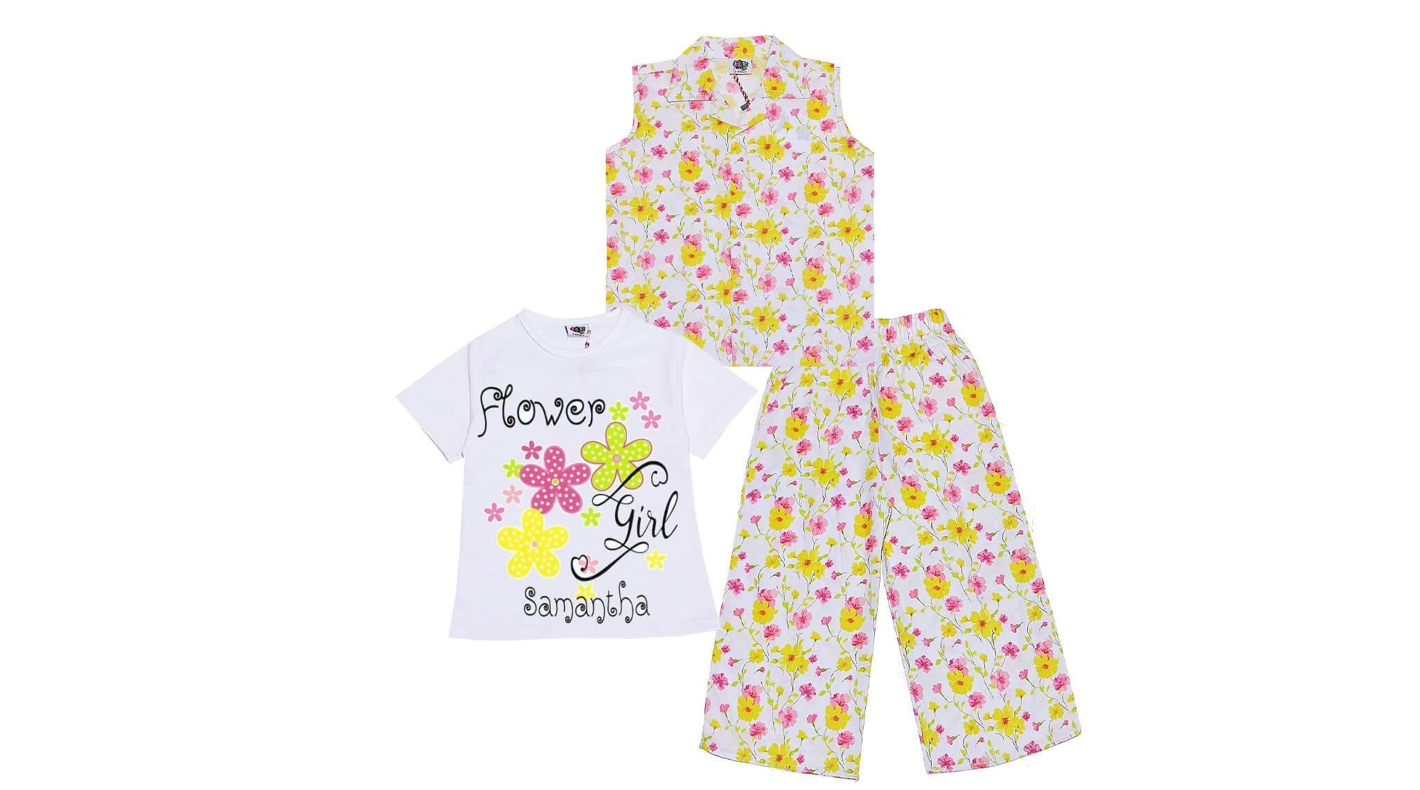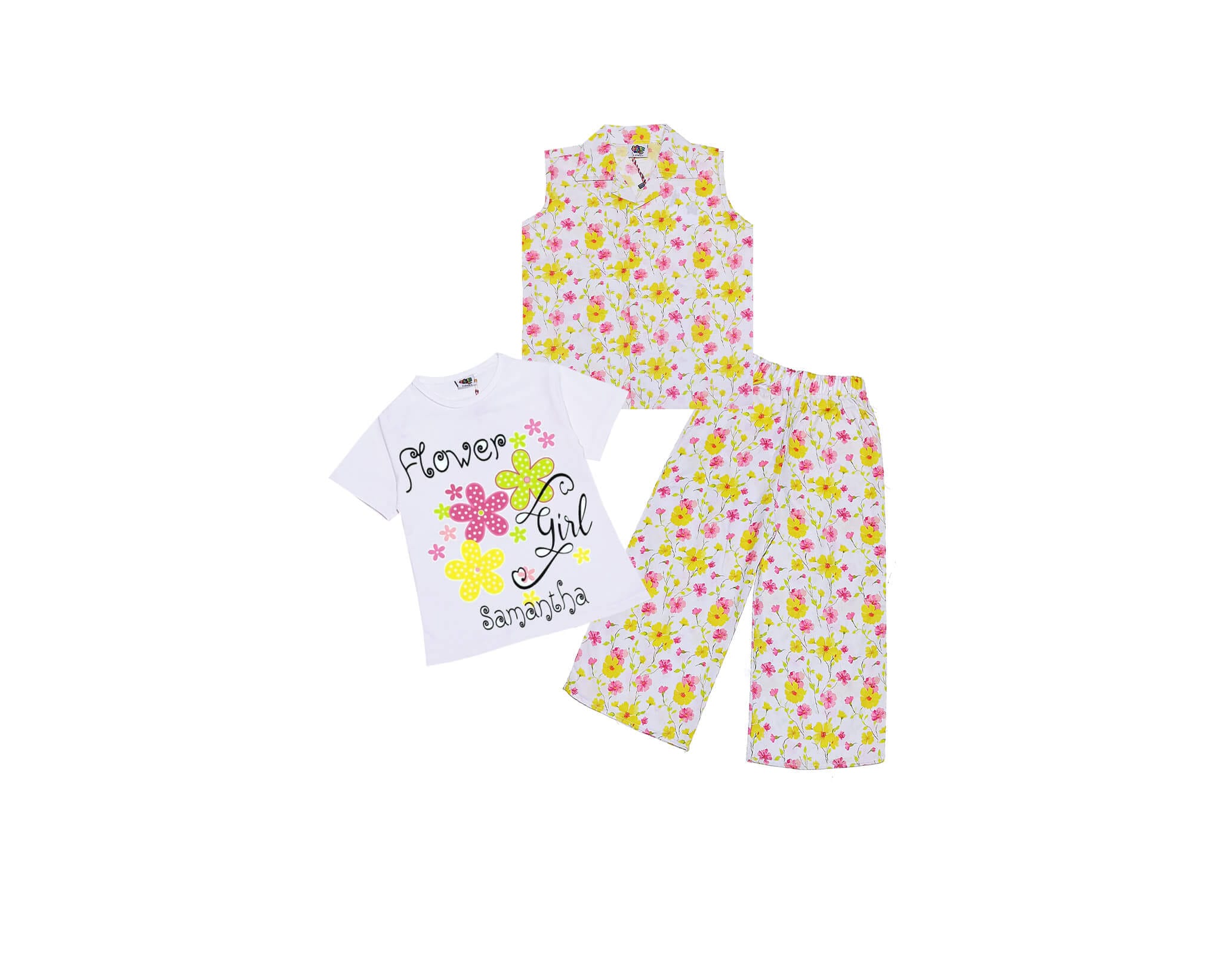 Lime Yellow Floral Cotton Sleeves less Coat Tee & Plazzo – Ash White