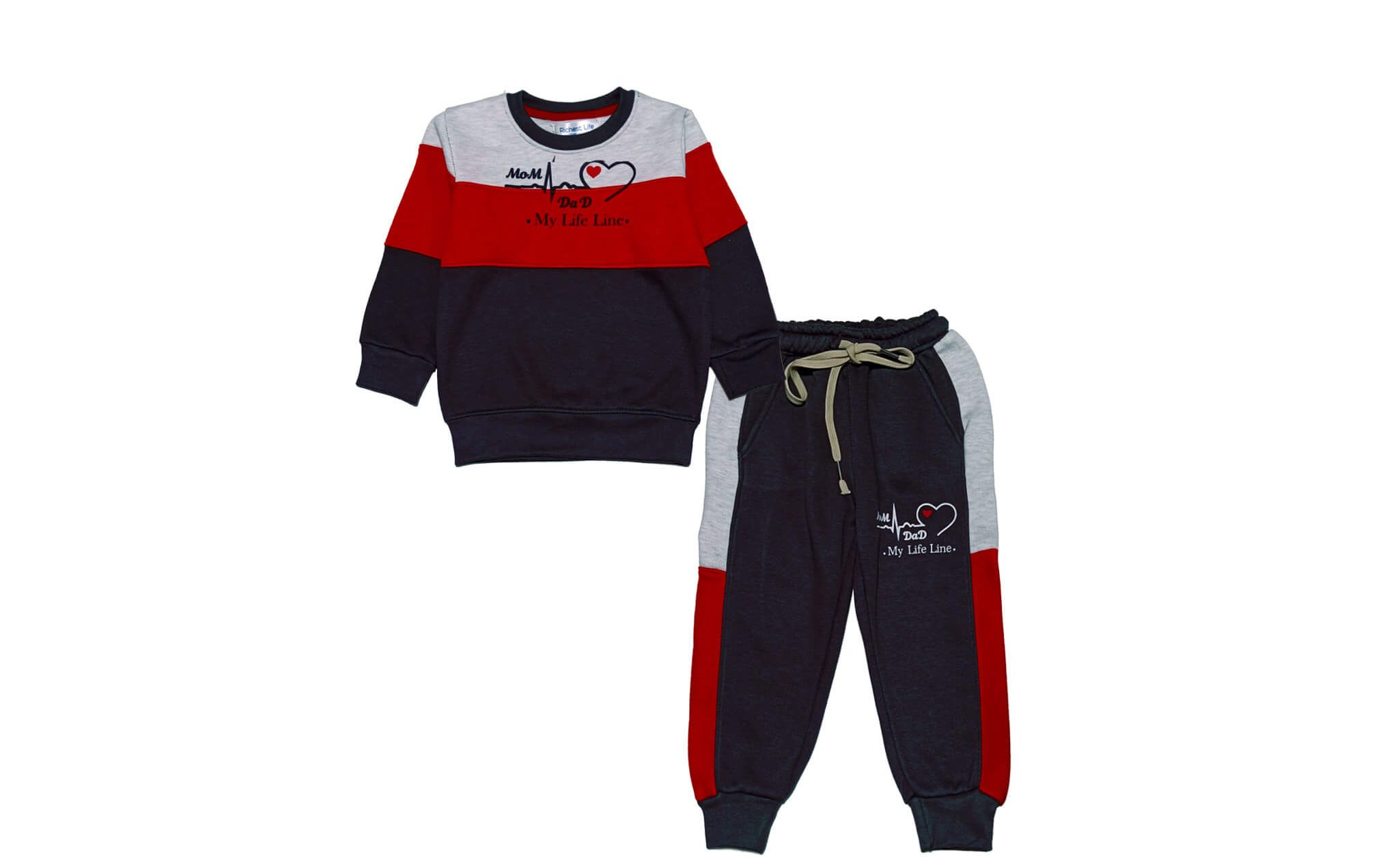 My Life Line 3 Penal Fleece Tracksuit – Grey Red Black