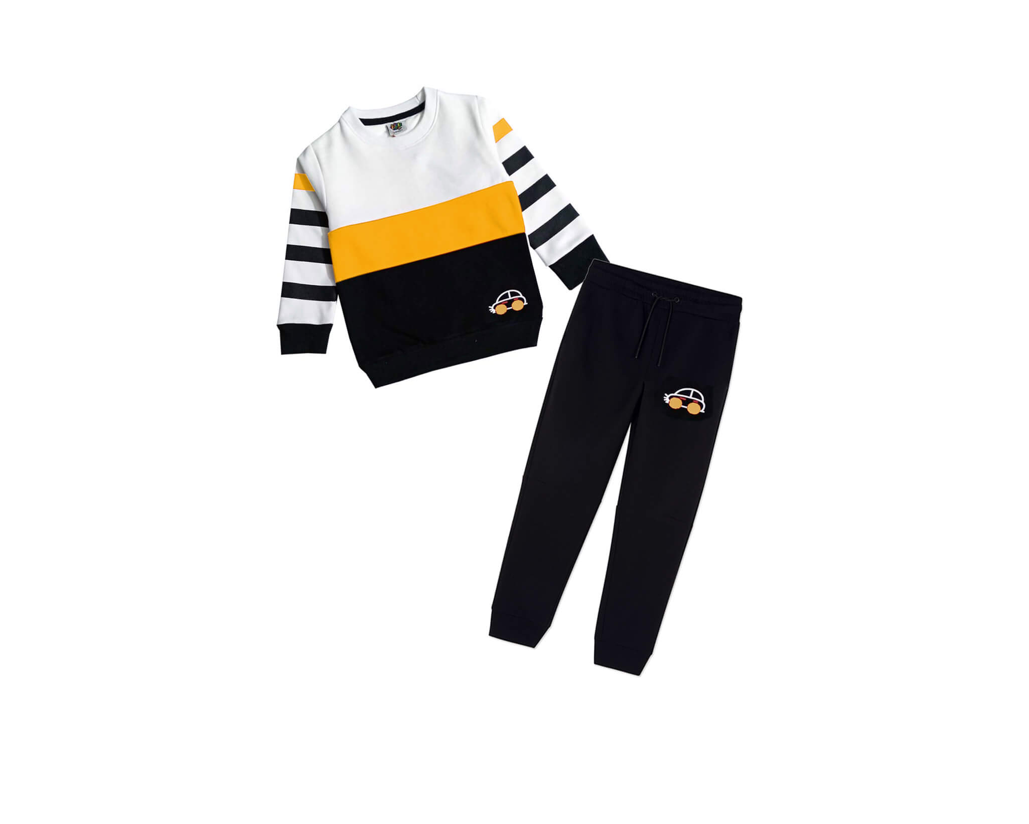 New Mini Car Stripper Sleeves Penal Fleece Tracksuit – White Mustard & Black