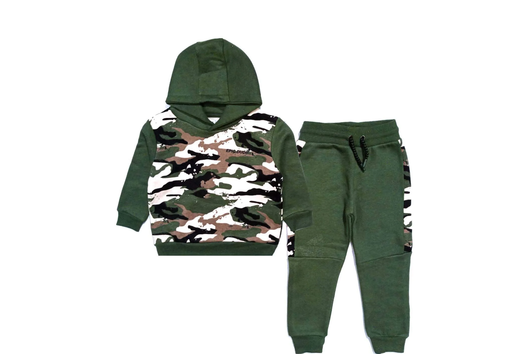 Olive Green Camouflaged Style Hoody Fleece Tracksuit