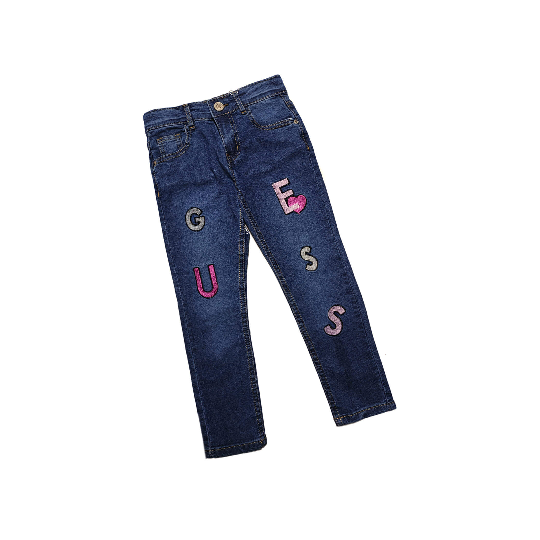 Pink Heart Guess Straight Denim Pant – Dark Blue
