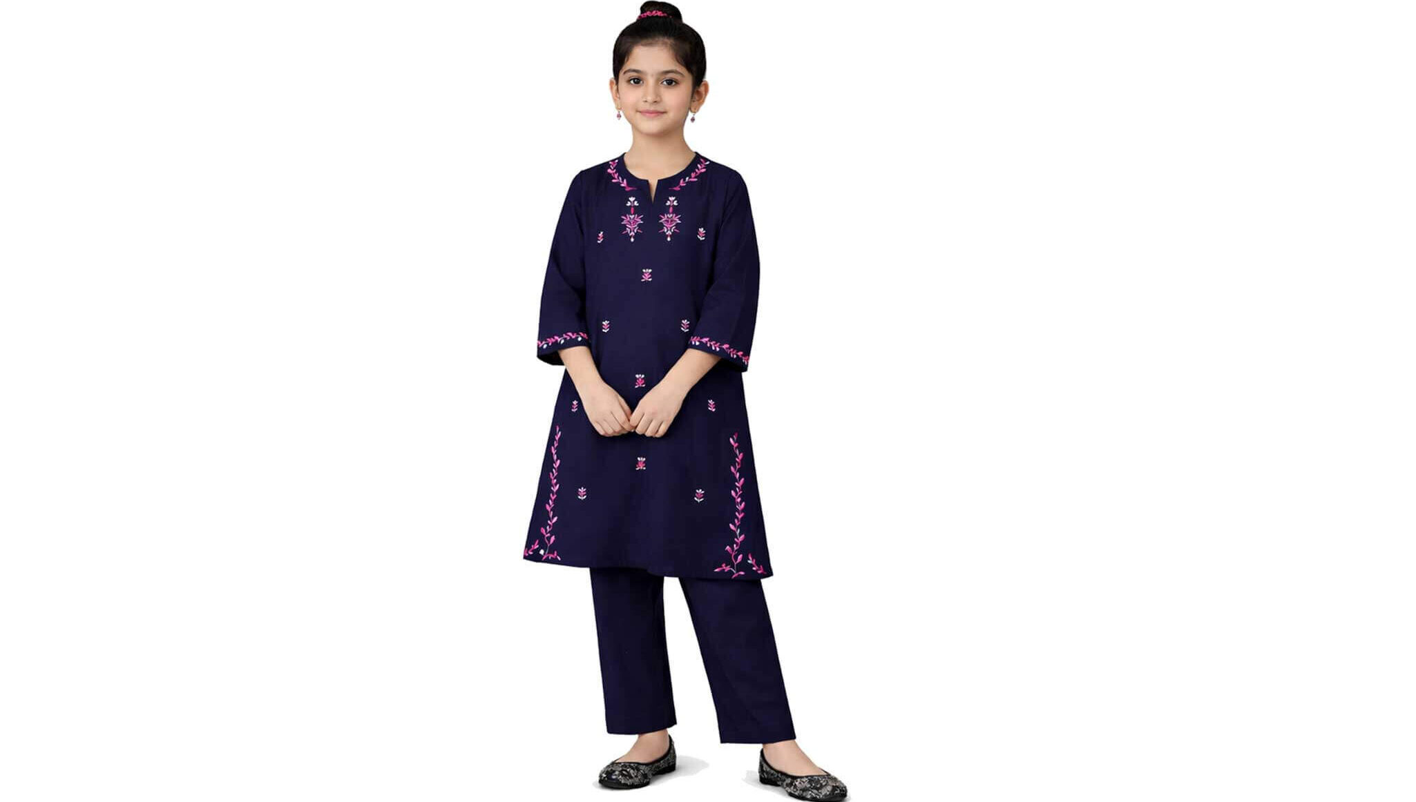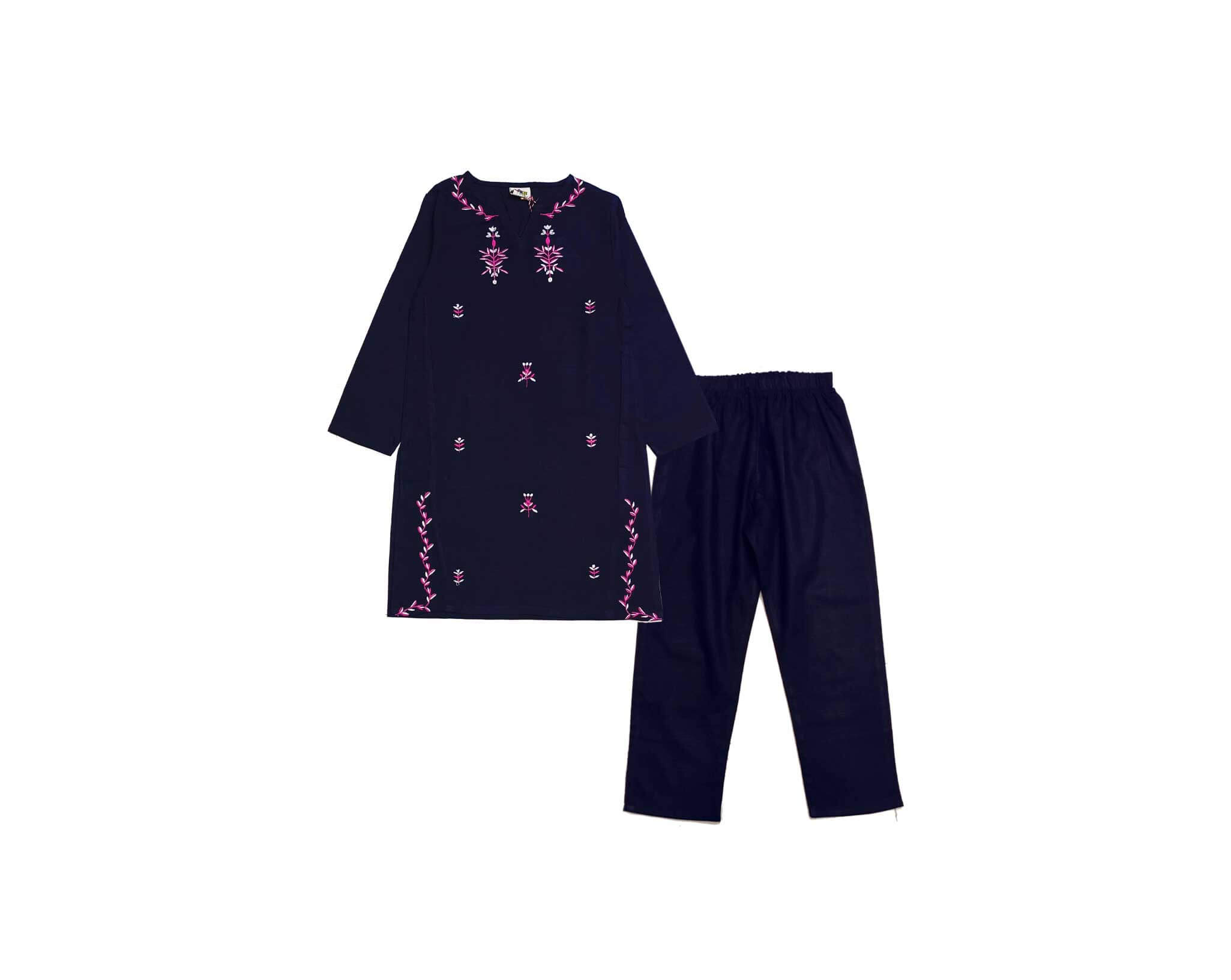 Pink White Emb Floral Khaddar Suit – Navy Blue