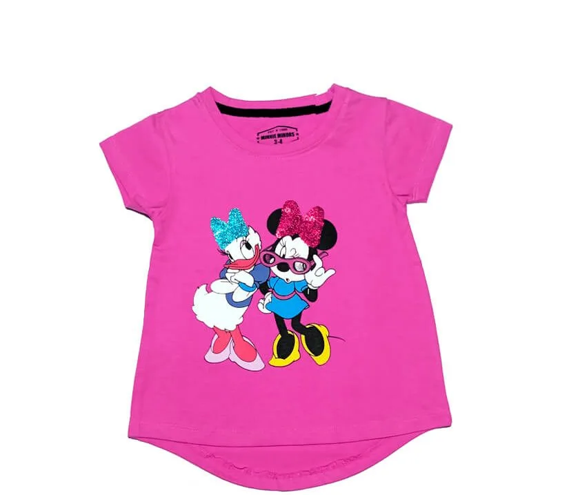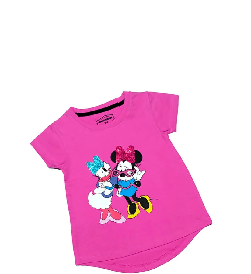 possing Mickey With Sequence Bow Tee Shirt – Pink