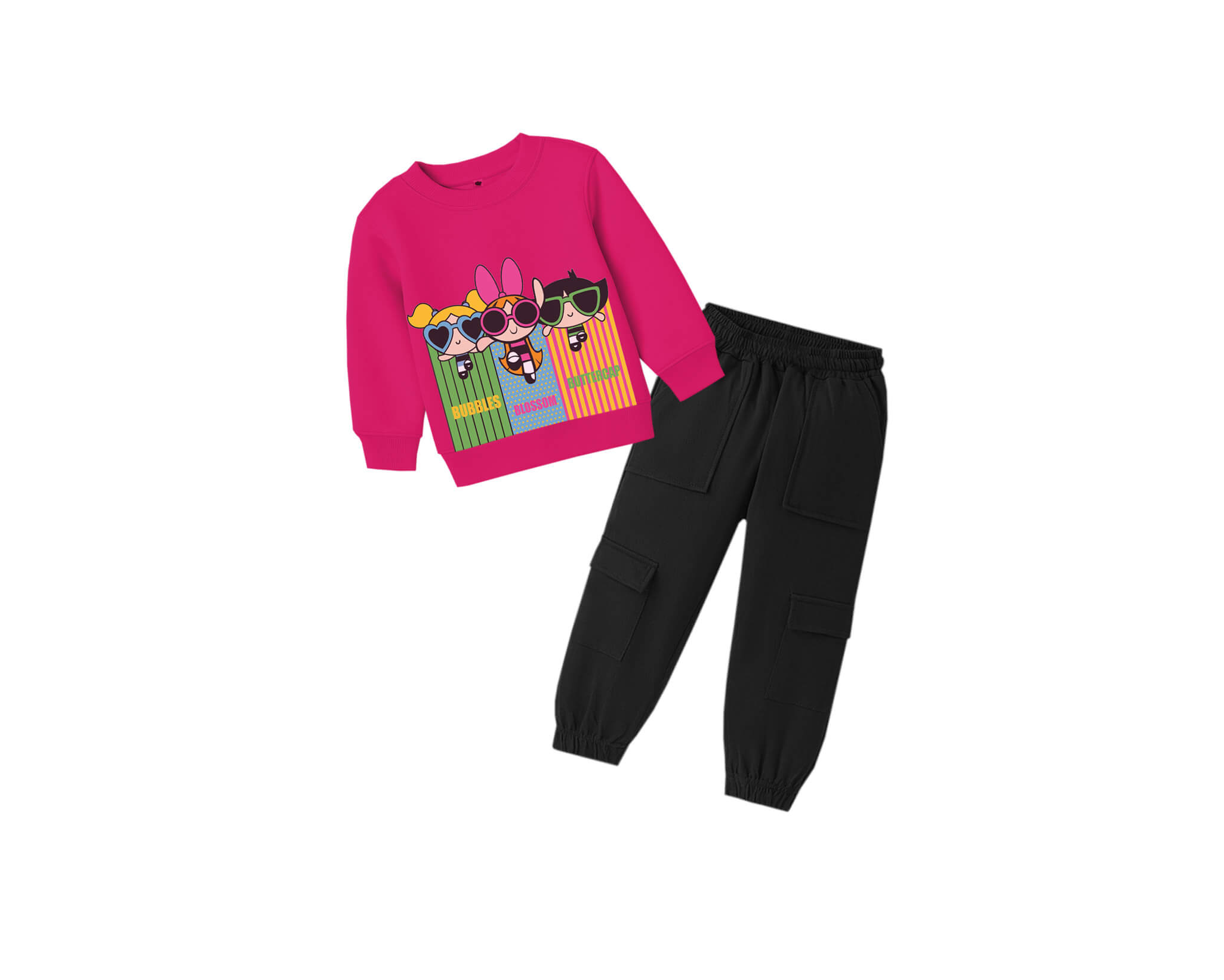 Powerpuff Girls Fleece Sweatshirt with Cargo Trouser – Shocking Pink & Black