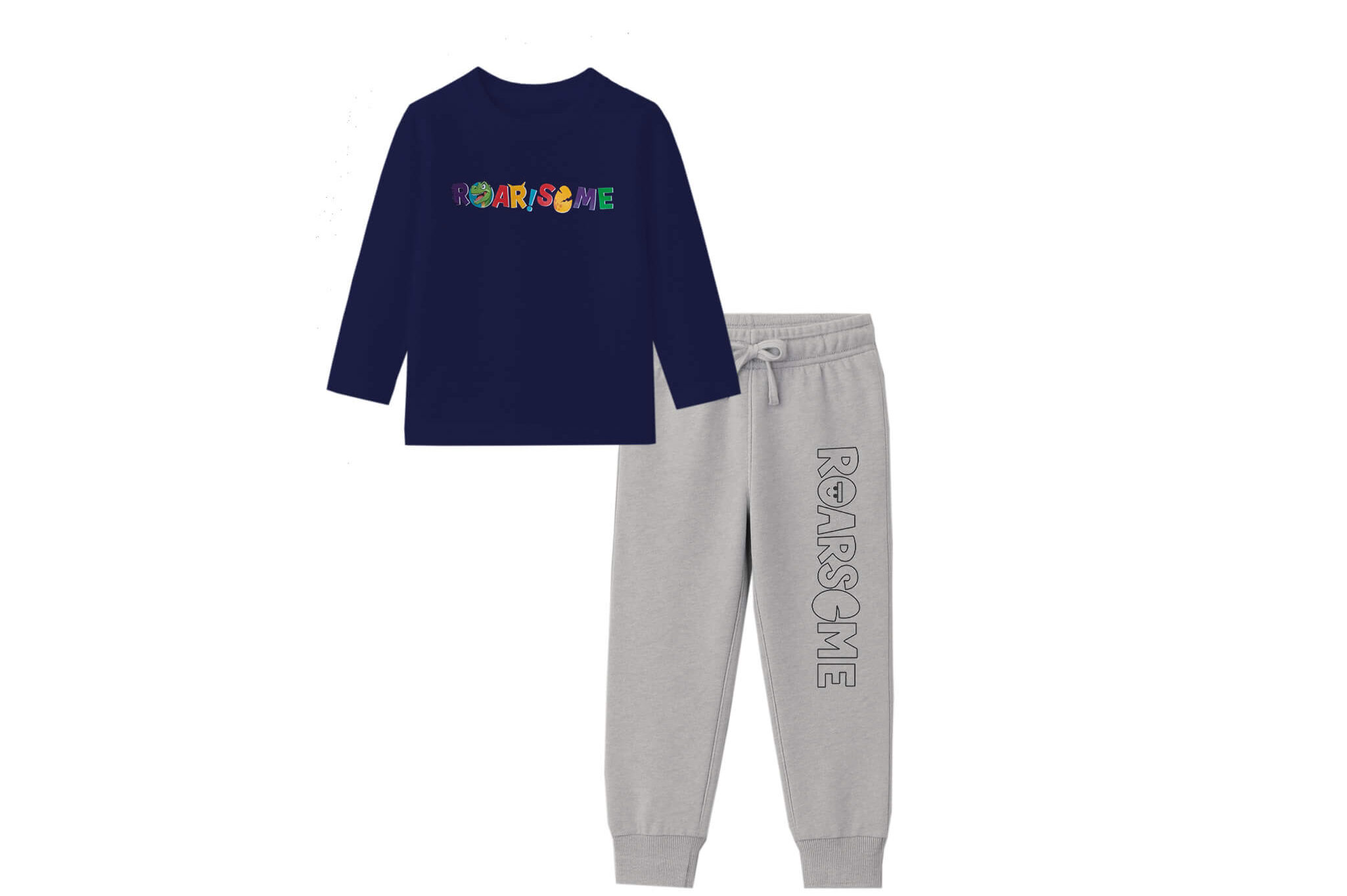 RoarSome Cotton Jercey Full Sleeves Tee & Trouser- Navy Blue & Heather Grey