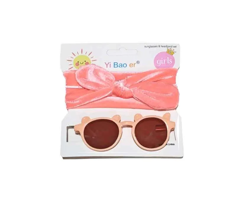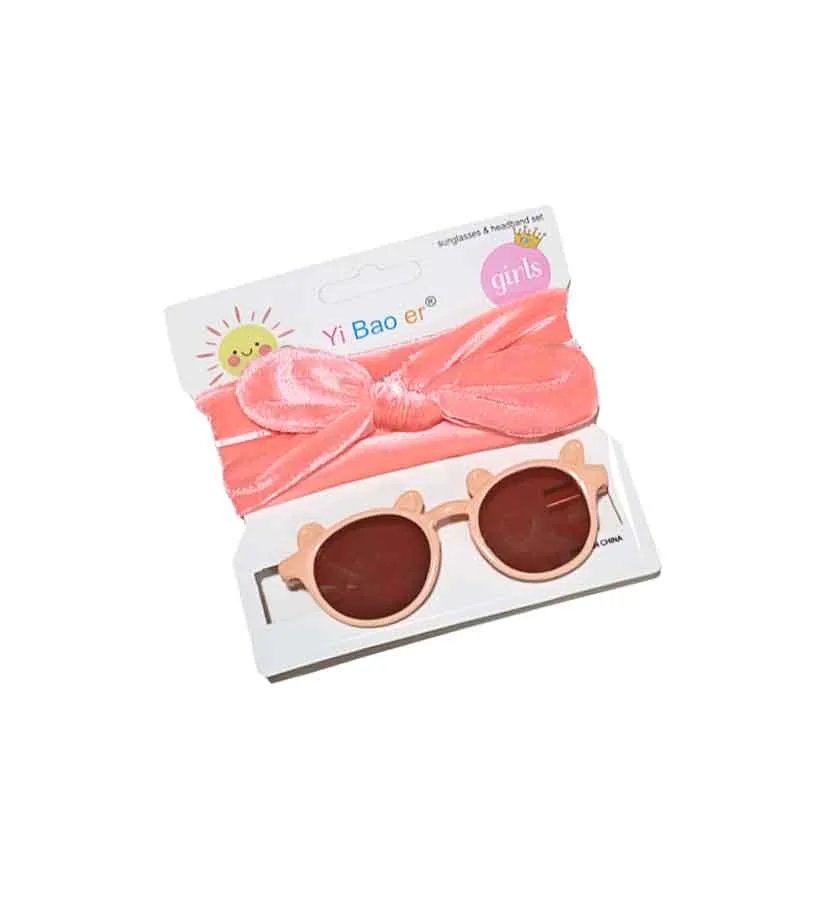 Round Bear Sunglasses & Bow Headband Set – Peach