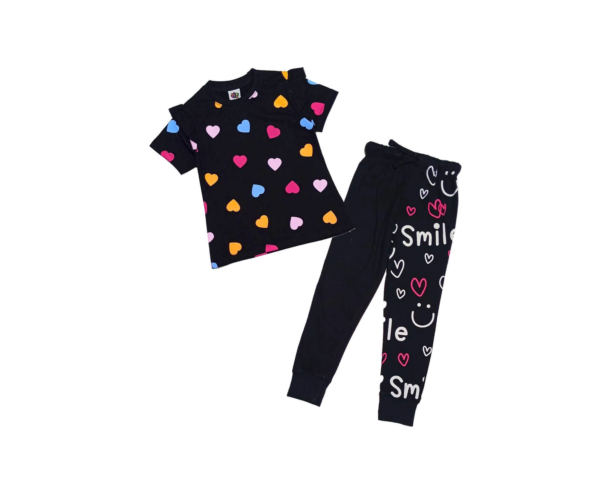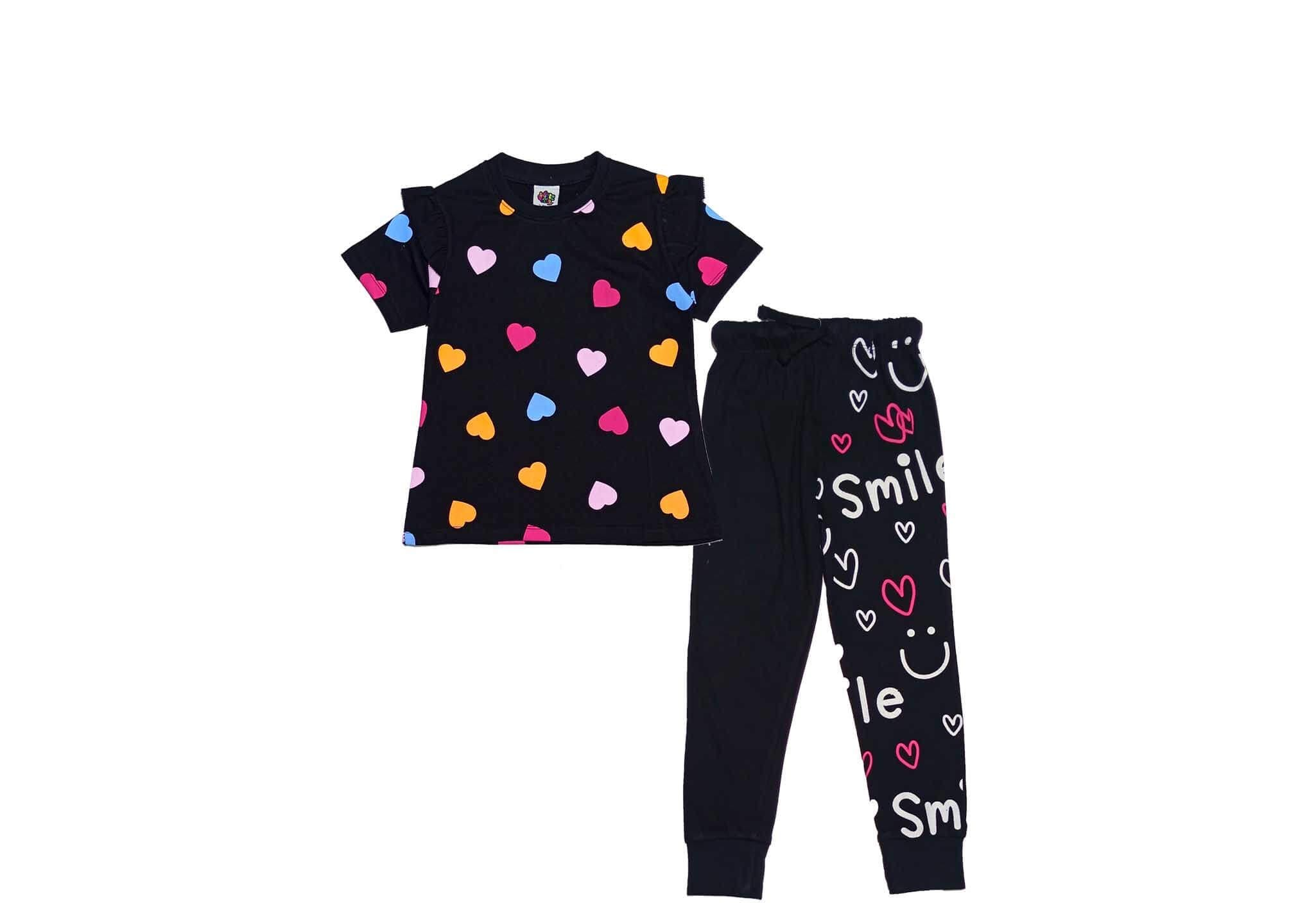 Smile Multi Hearts Tee & Trouser – Black