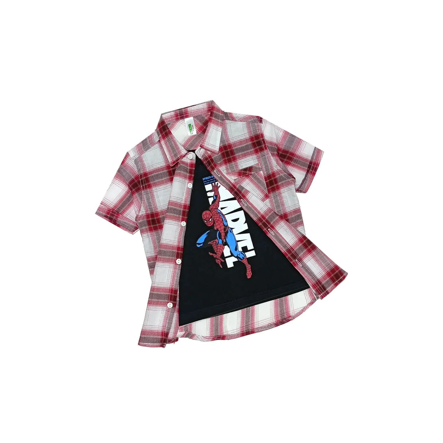 Spider Action Twofer Cotton Cheked Casual Shirt Grey – Black