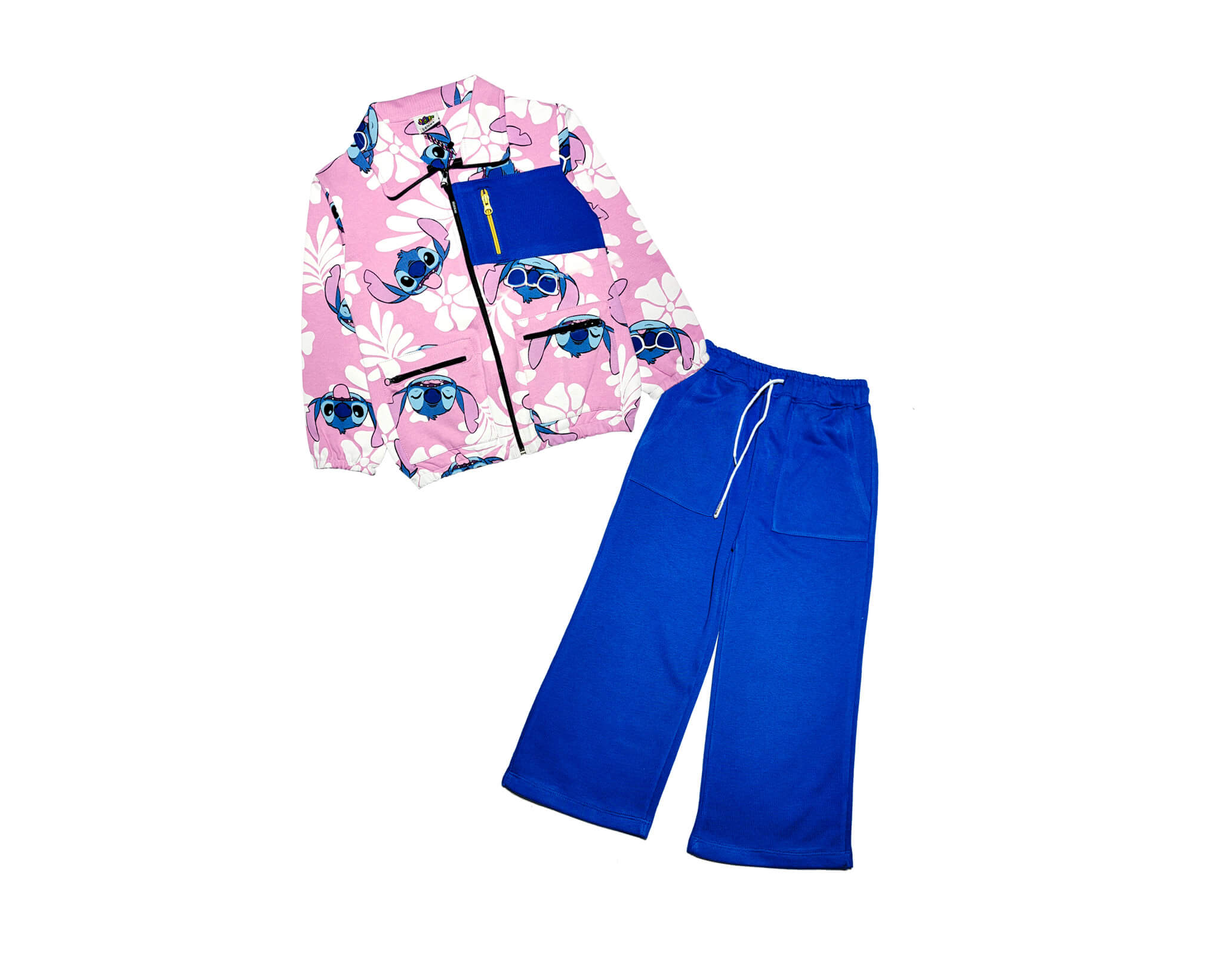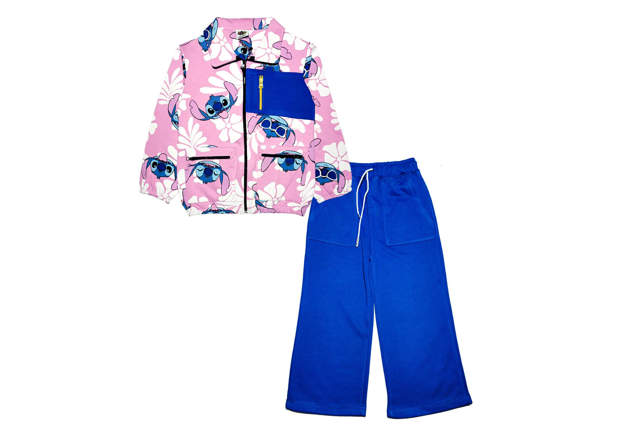 Stitch Zip Pocket Style Terry Mock Neck Sweat & Flare Trouser – Baby Pink & Royal Blue