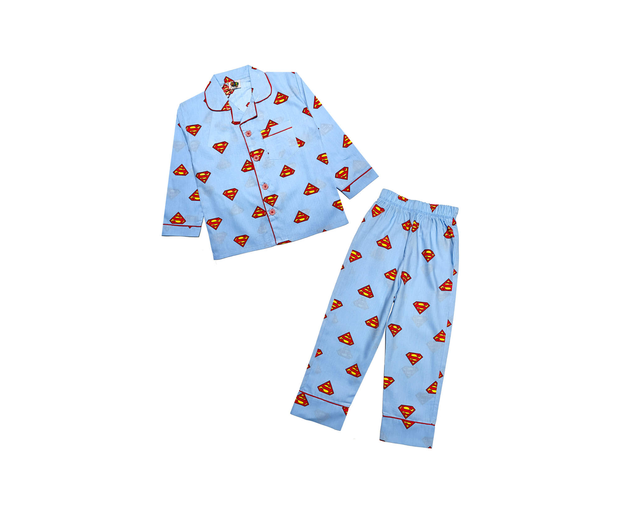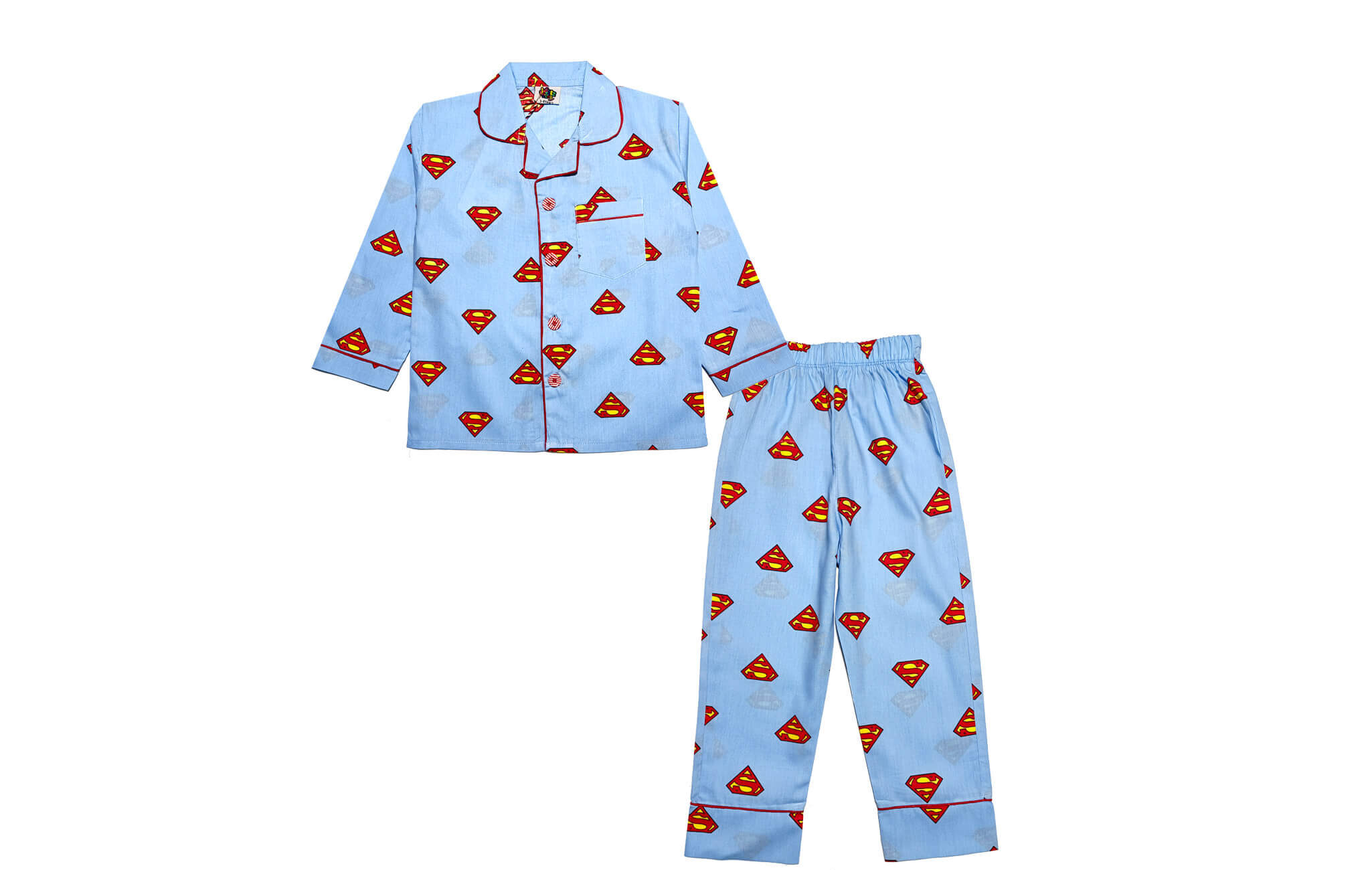 Super Heroes Full Sleeves Cotton Night Suit -Blue