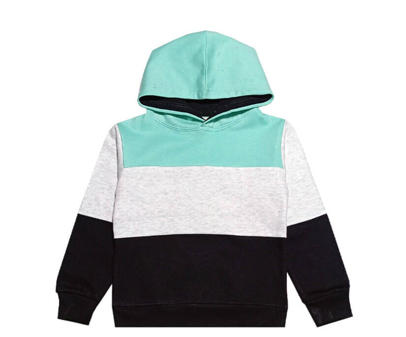 White Hood for Boys by LittlezClub.pk . Made in soft and stretchy, thick-weight fleece,Pieces have Aqua White & Black panels , branded woven tabs.