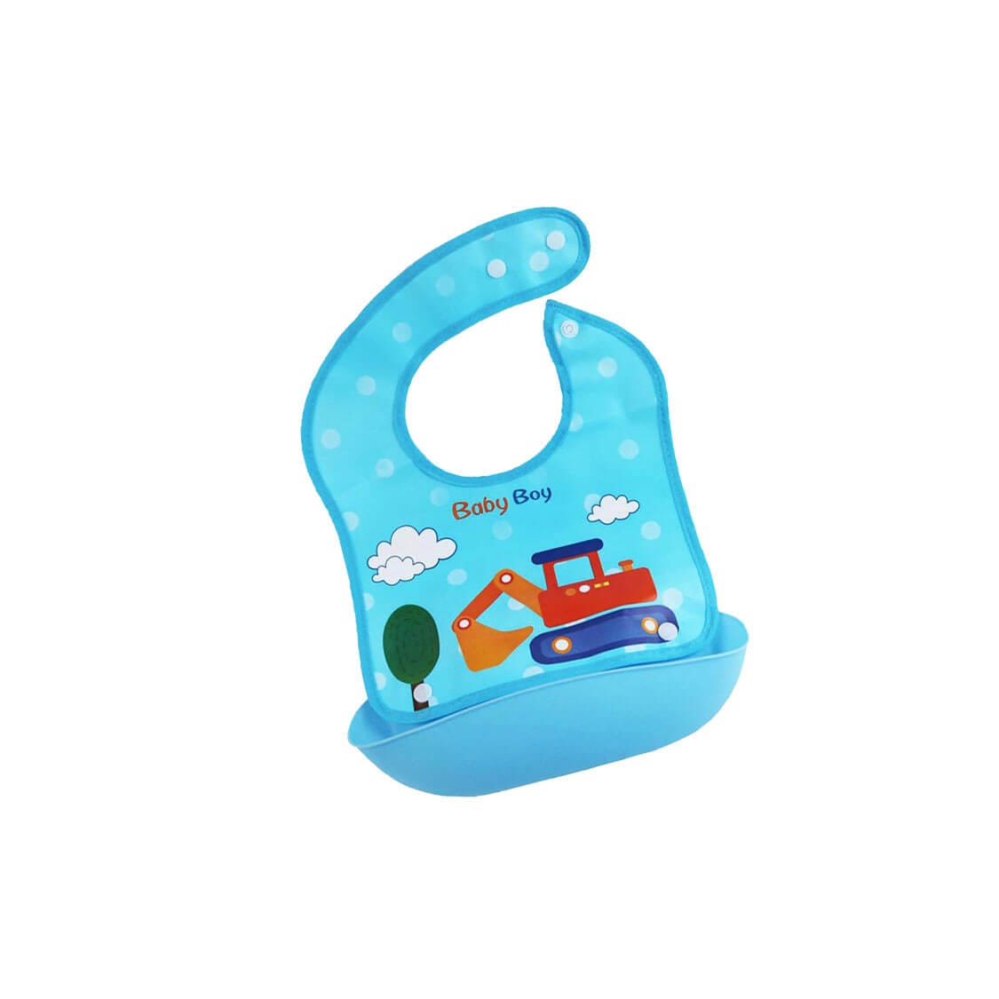 Toy Buldozer Silicone Waterproof Baby Bibs with Tray -Blue