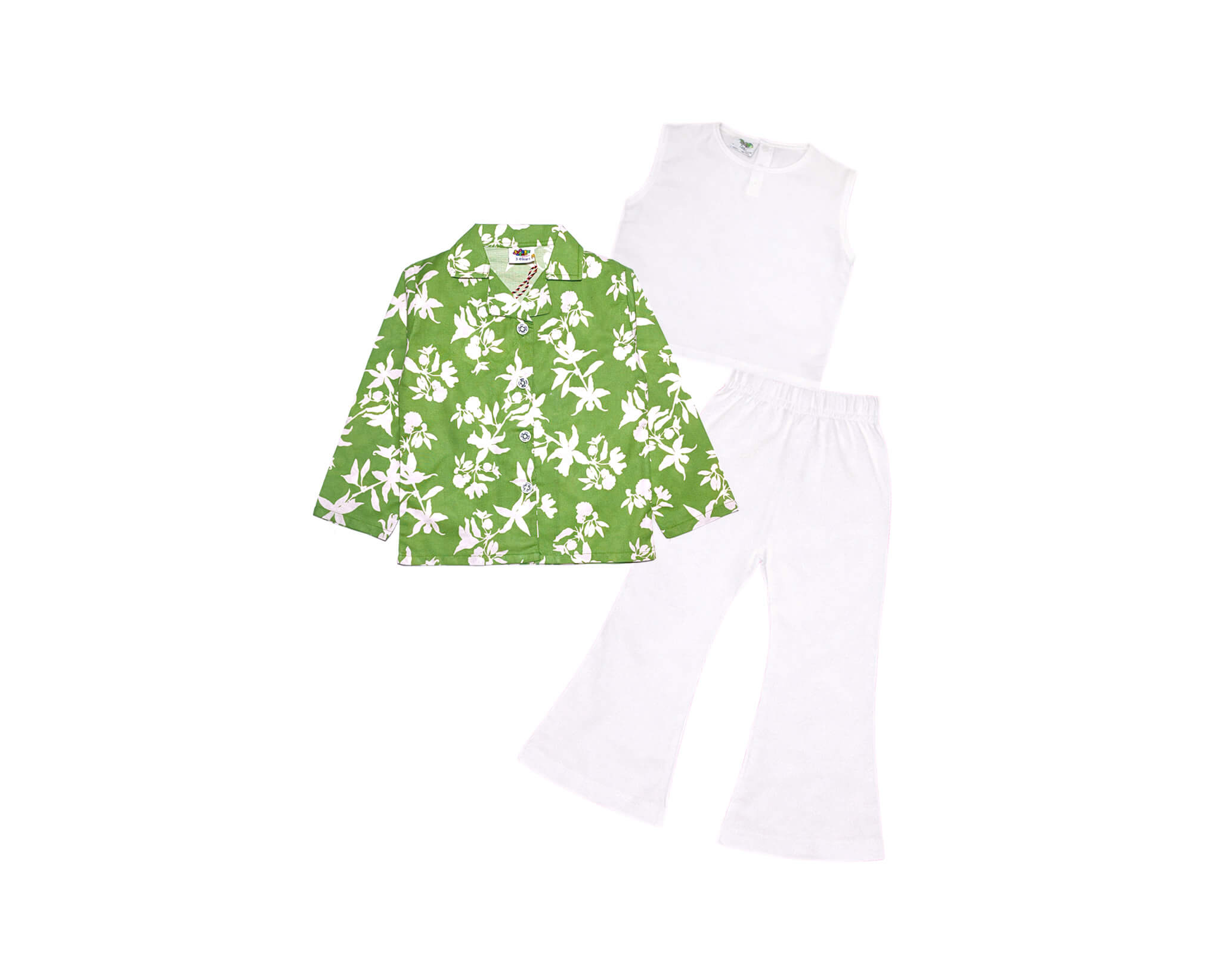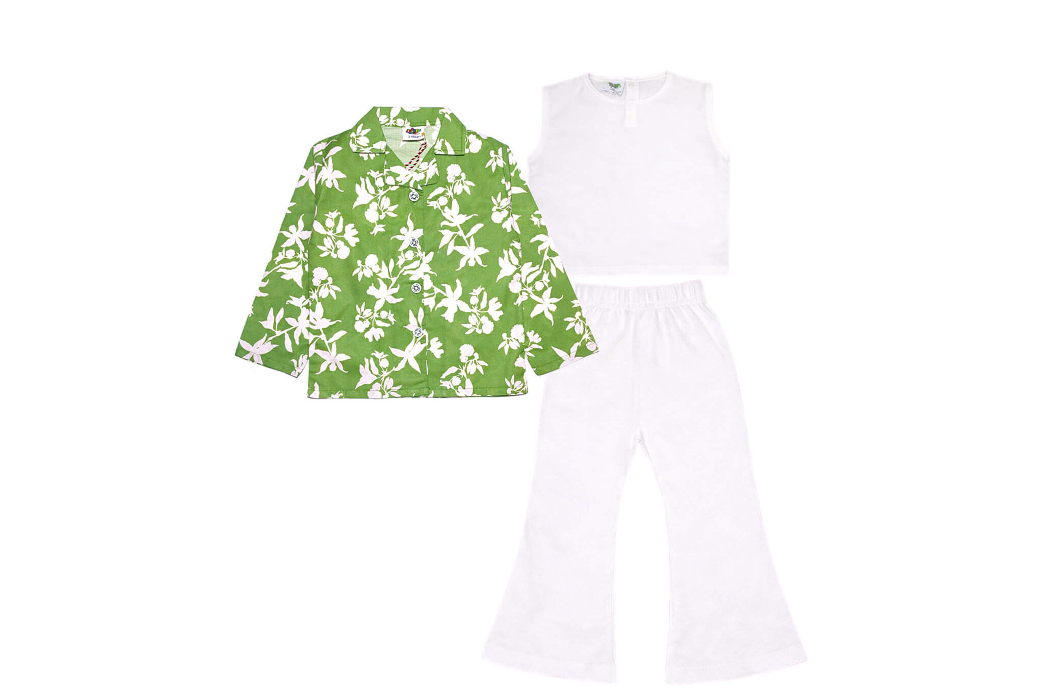 Tropical Flowers 3 pcs Suit – Green & White