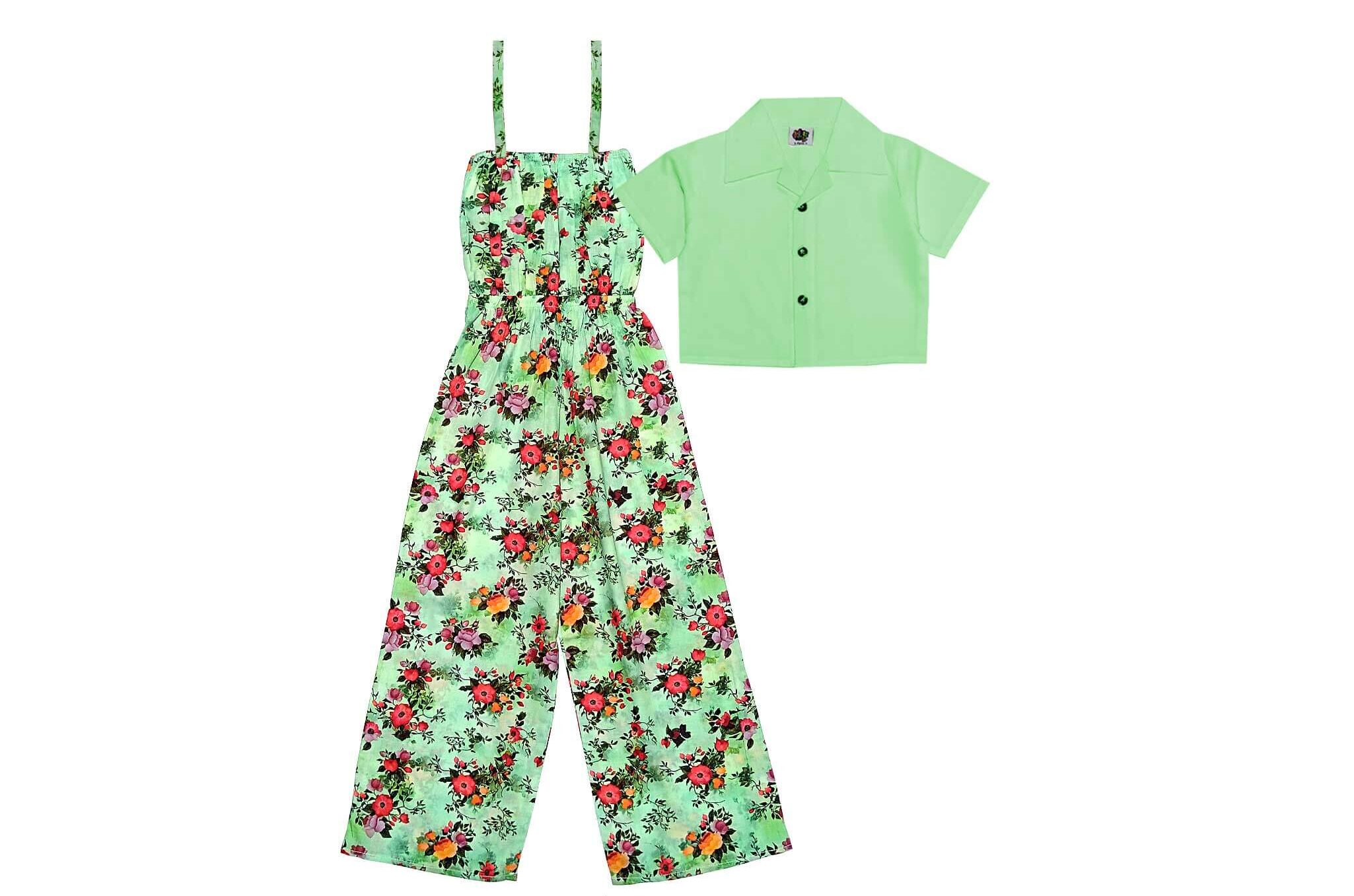 Tulip Flowers Jumpsuit with Koti – Pistachio Green